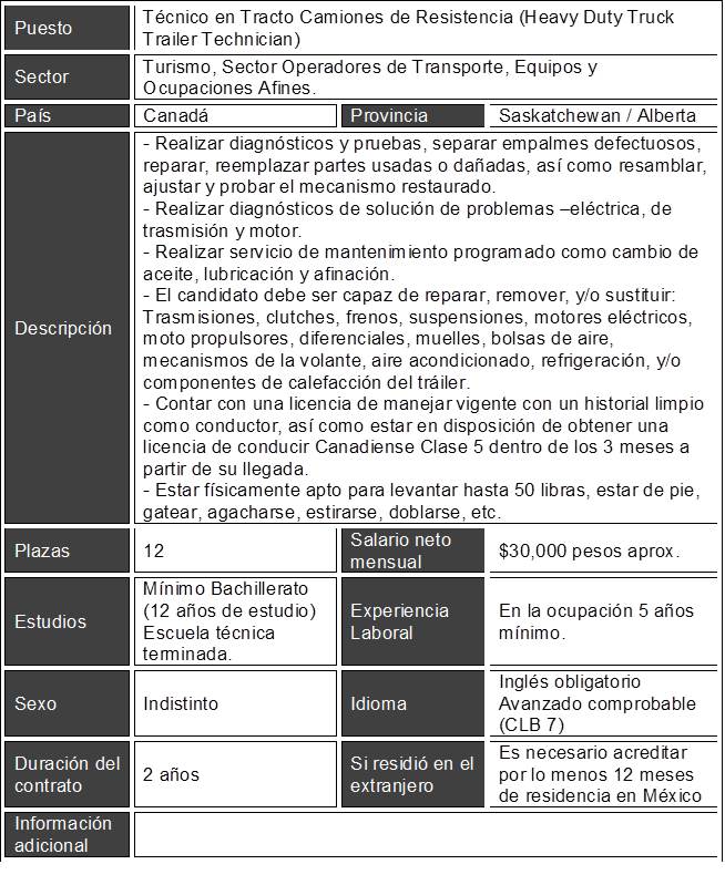 Puesto: Técnico en tracto camiones de resistencia